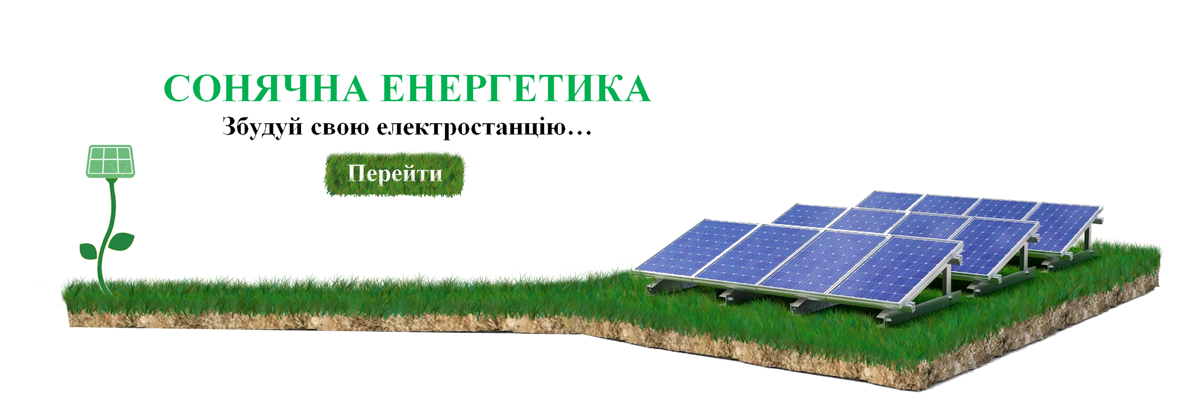 Сонячна енергія — енергія, отримана від Сонця у вигляді тепла та світла. Ця енергія значною мірою керує кліматом та погодою, та є основою життя. Технологія, що контролює сонячну енергію називається сонячною енергетикою. Сонячні електростанції дають Вам можливість отримувати електричну енергію за допомогою сонця. Завдяки такому обладнанню як сонячні панелі, інвертори та акумулятори Ви отримаєте енергонезалежність. Ми будуємо сонячні електростанції ПІД КЛЮЧ. Готові реалізувати різні проекти. Великий вибір обладнання.
