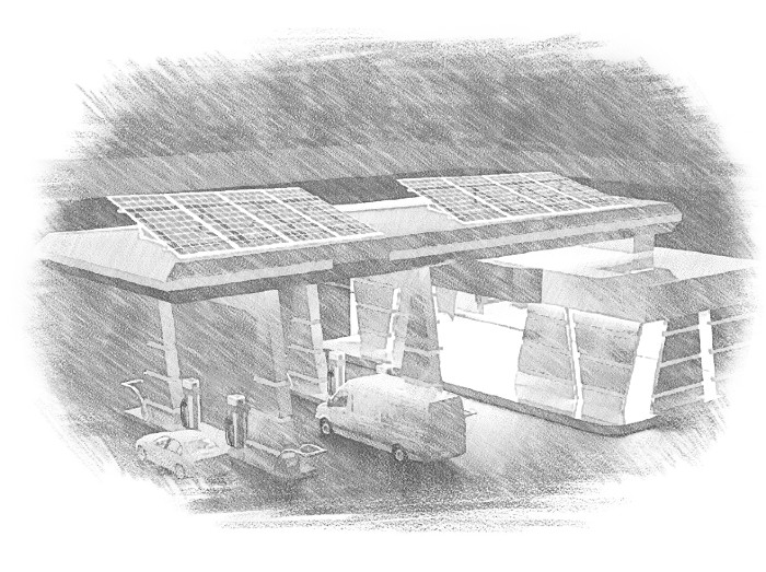 встановлюються на дахах АЗС і перетворюють сонячне світло в електроенергію. Ця