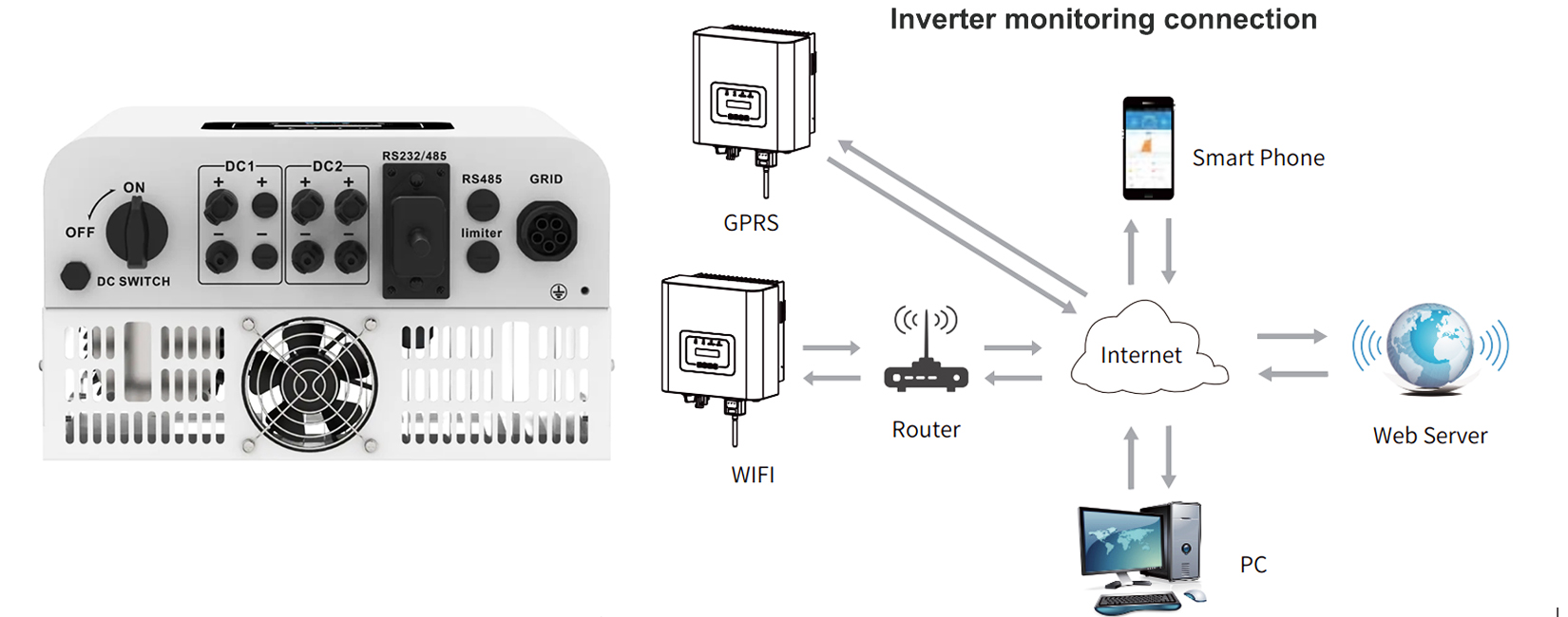 - Моніторинг та віддалене керування через WiFi: Наявність вбудованого Wi-Fi дозволяє власникам в реальному часі моніторити роботу своєї сонячної енергетичної системи та, можливо, керувати нею віддалено через спеціальні додатки або веб-інтерфейс.