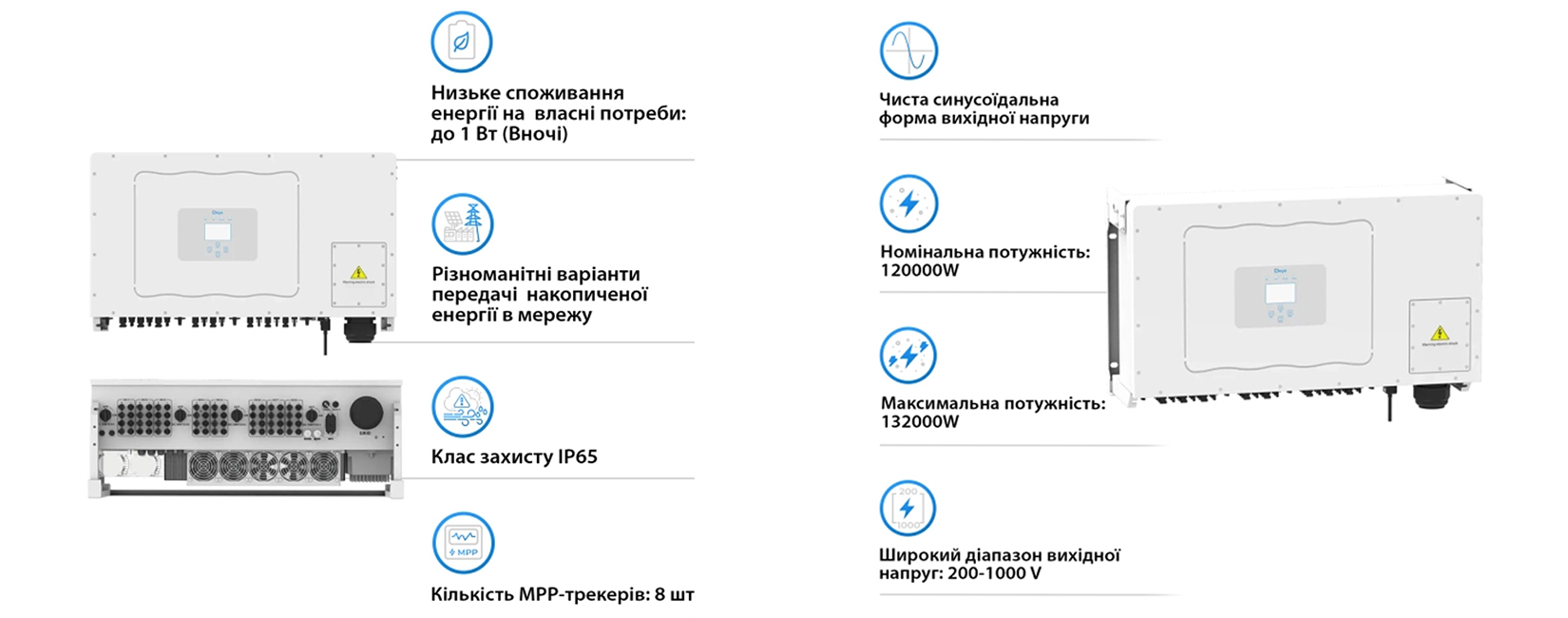 Основні характеристики та параметри трифазного мережевого інвертора Deye SUN-120K-G: