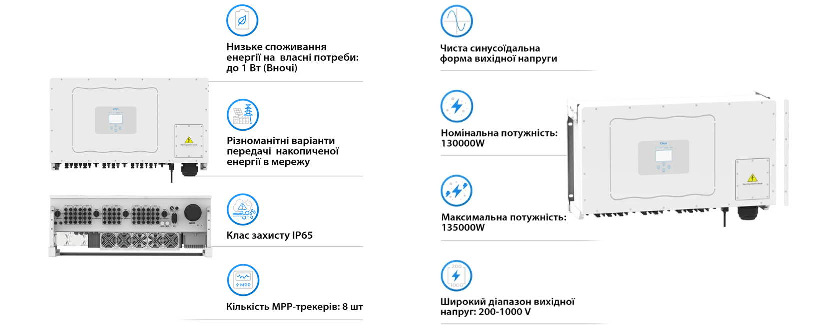 Основні характеристики та параметри трифазного мережевого інвертора Deye SUN-130K-G01P3: