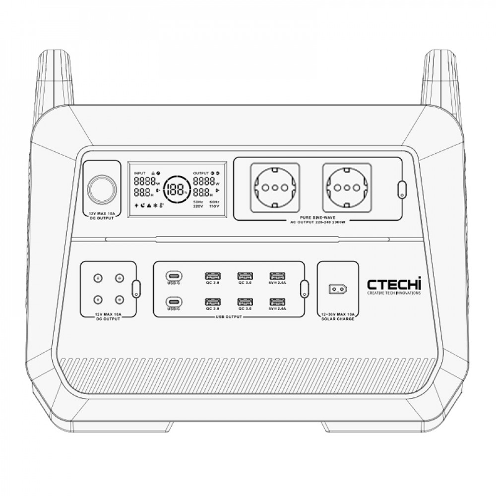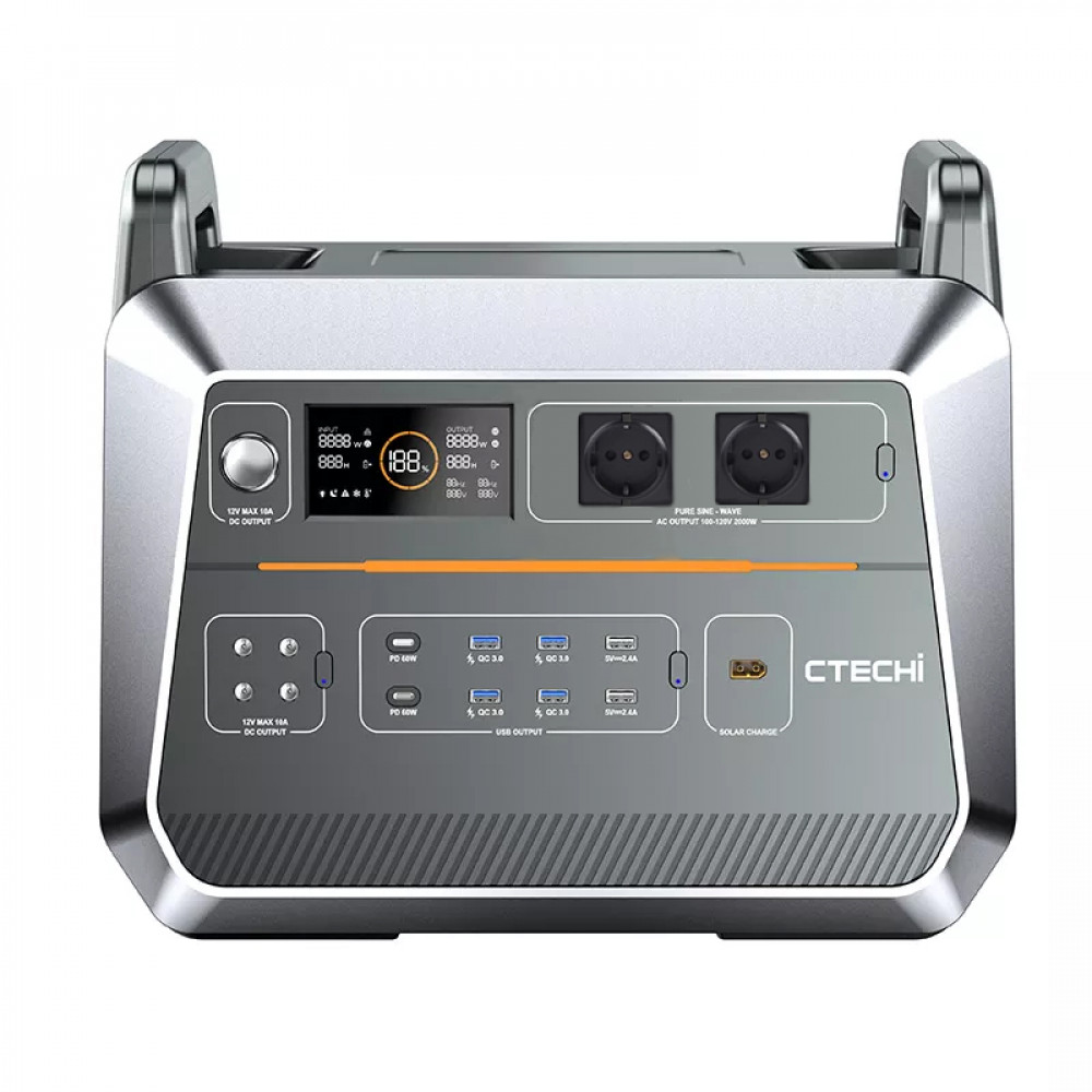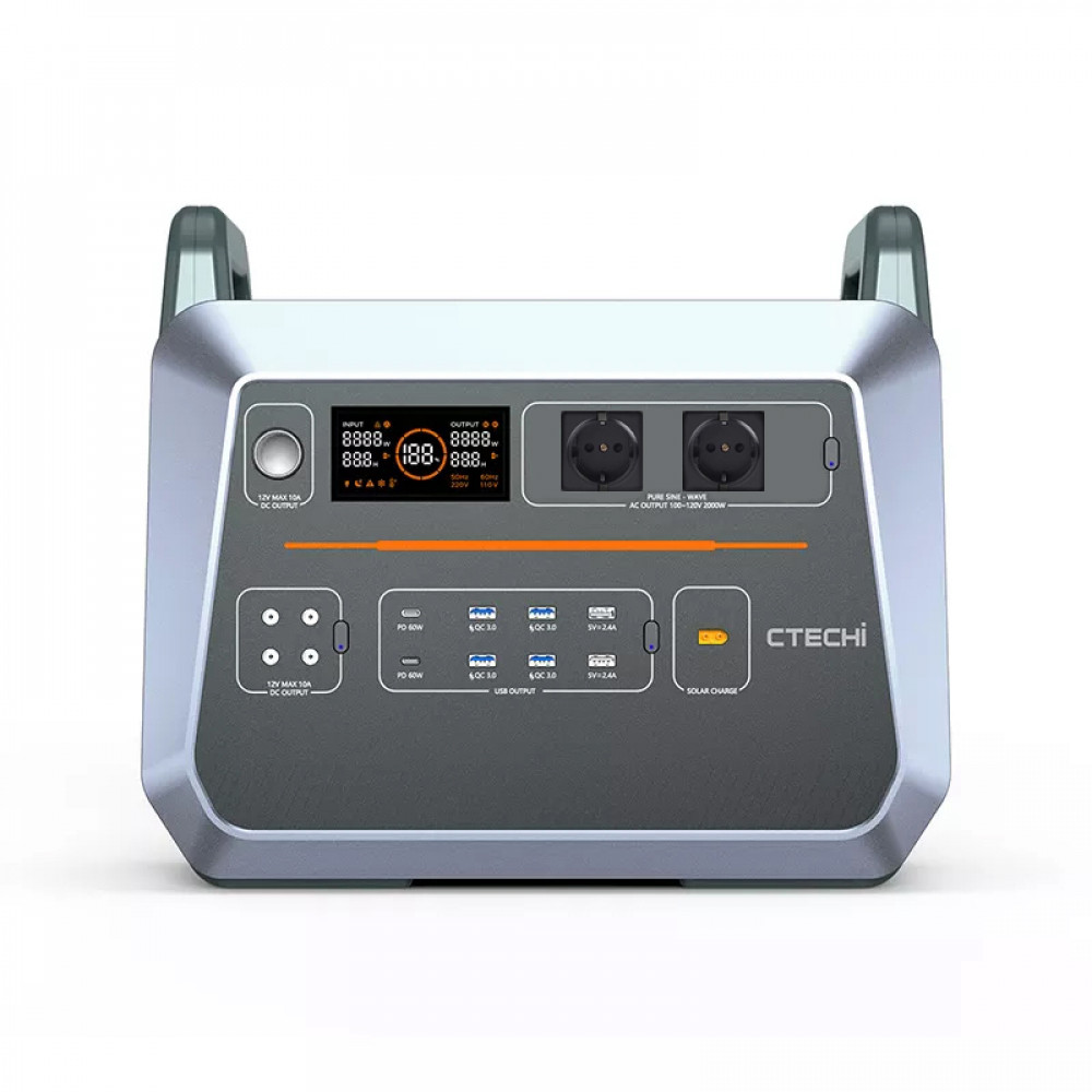 CTECHi ST2000 — безпечне джерело живлення потужністю 2000 Вт із вбудованим двонаправленим інвертором . Завдяки функції швидкої зарядки його можна зарядити до 60% за годину.